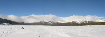 With conditions not great for riding, I did some touring... this was the view from a pass near Cony Mt. Sure did look like more interesting terrain- some probably steep enough for turns too.